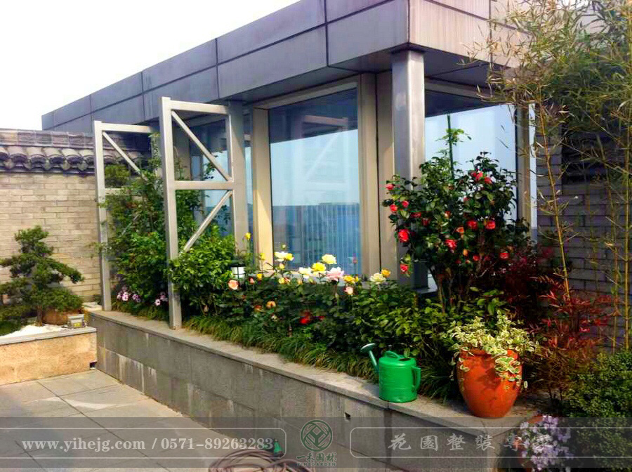 藍色錢江私家屋頂花園景觀|私家露臺花園改造|私人屋頂花園景觀綠化施工